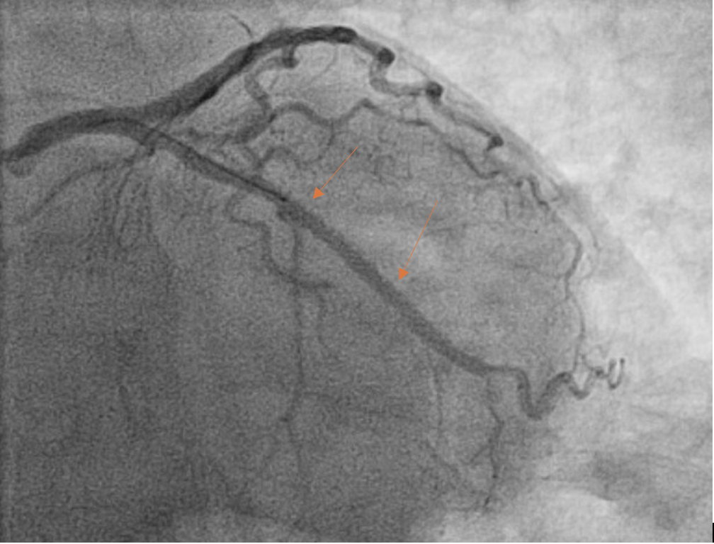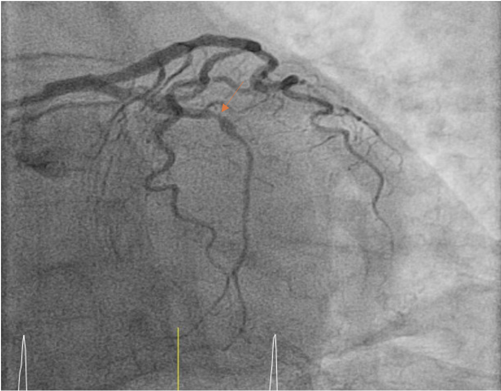 The post-PCI angiogram shows successful re-vascularization of LCx.